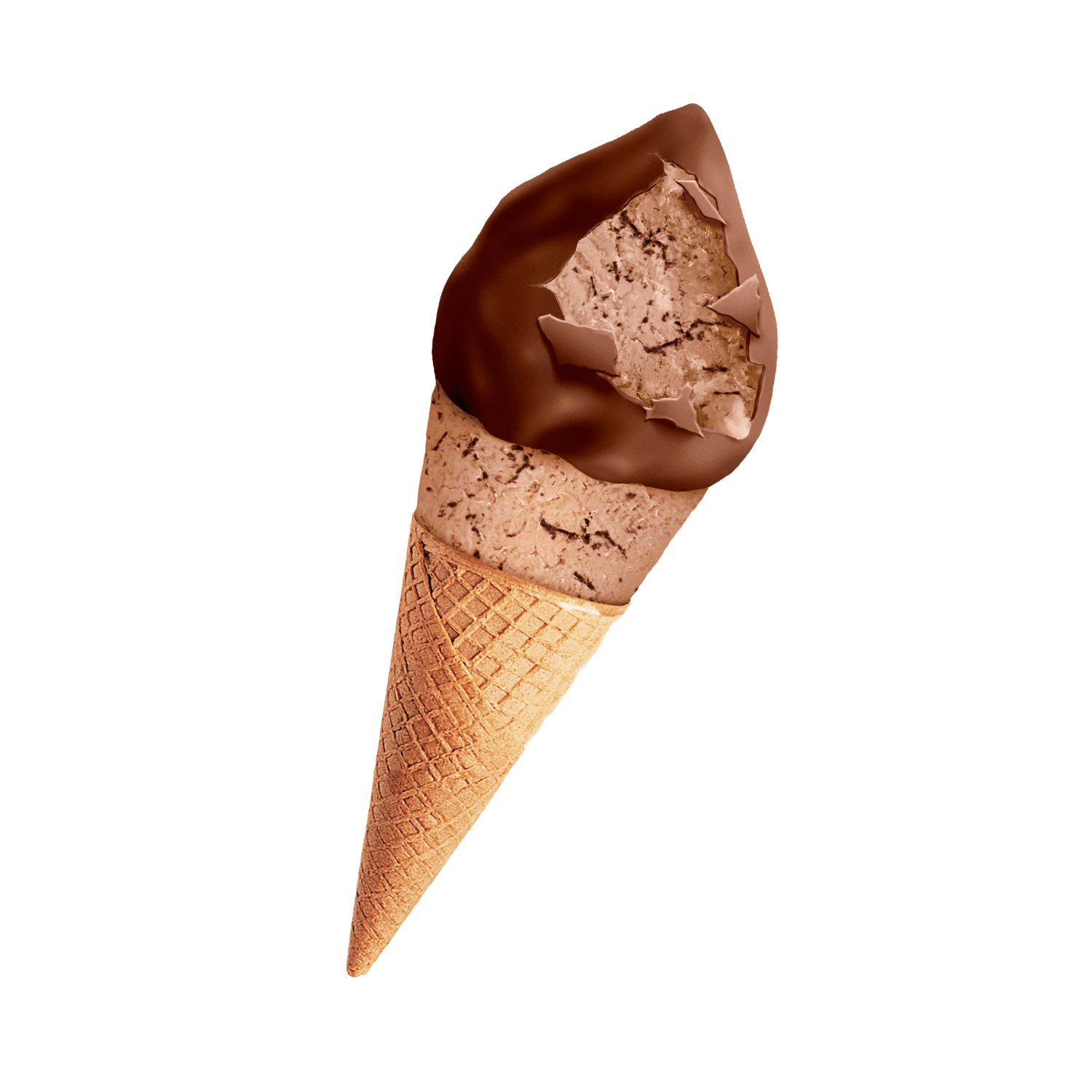 Laktosfri gräddglass med chokladsmak, krossade chokladbitar (2,5%), doppad i kakaodopp i glutenfritt bakat rån.