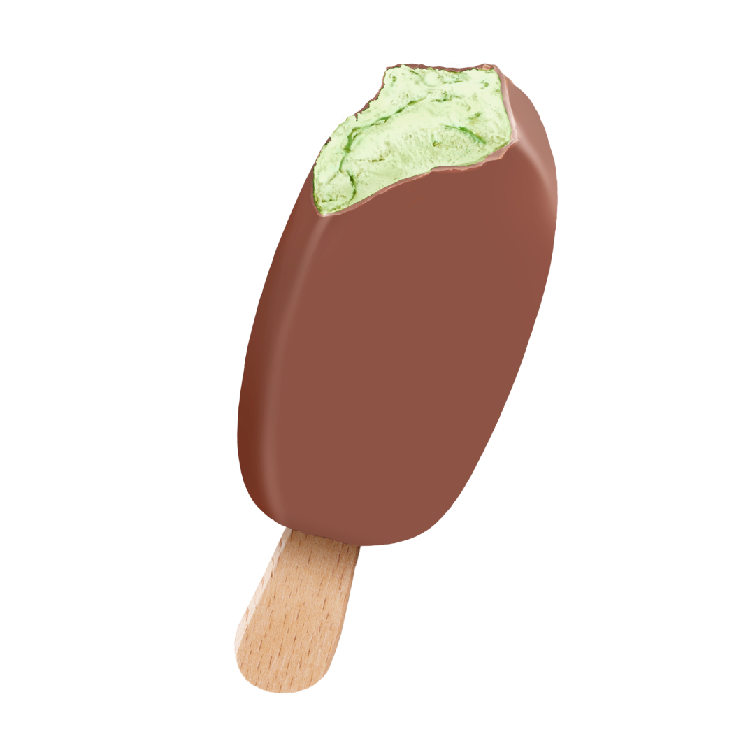 Gräddglass med smak av päron och päronrippel, överdragen med smak av choklad. Utan tillsatt socker. Innehåller sötningsmedel.